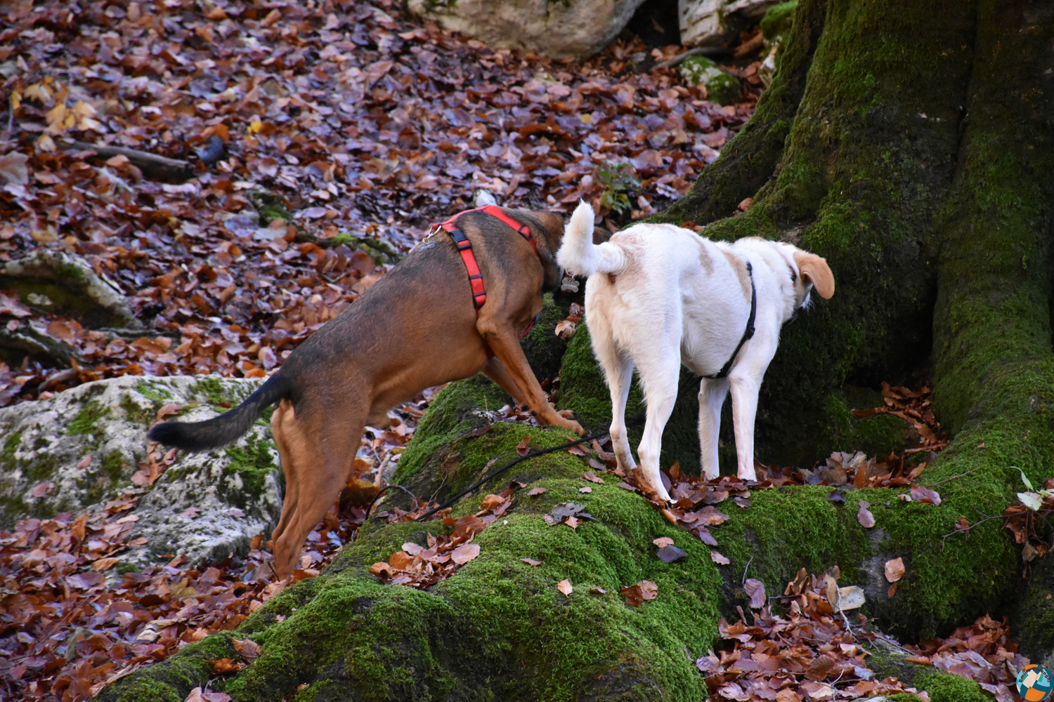 Al cane non fa piacere come lo pensiamo noi umani, che adattiamo ogni circostanza al nostro modo di pensare, i cani non valutano le situazioni come le valutiamo noi, tuttavia trovarsi immersi in ampi spazi alberati, con terreni variegati, è una situazione che provoca sicuramente un senso di appagamento e una volta stabiliti i rapporti con gli altri cani e umani la camminata diventa per loro un’esplorazione continua.